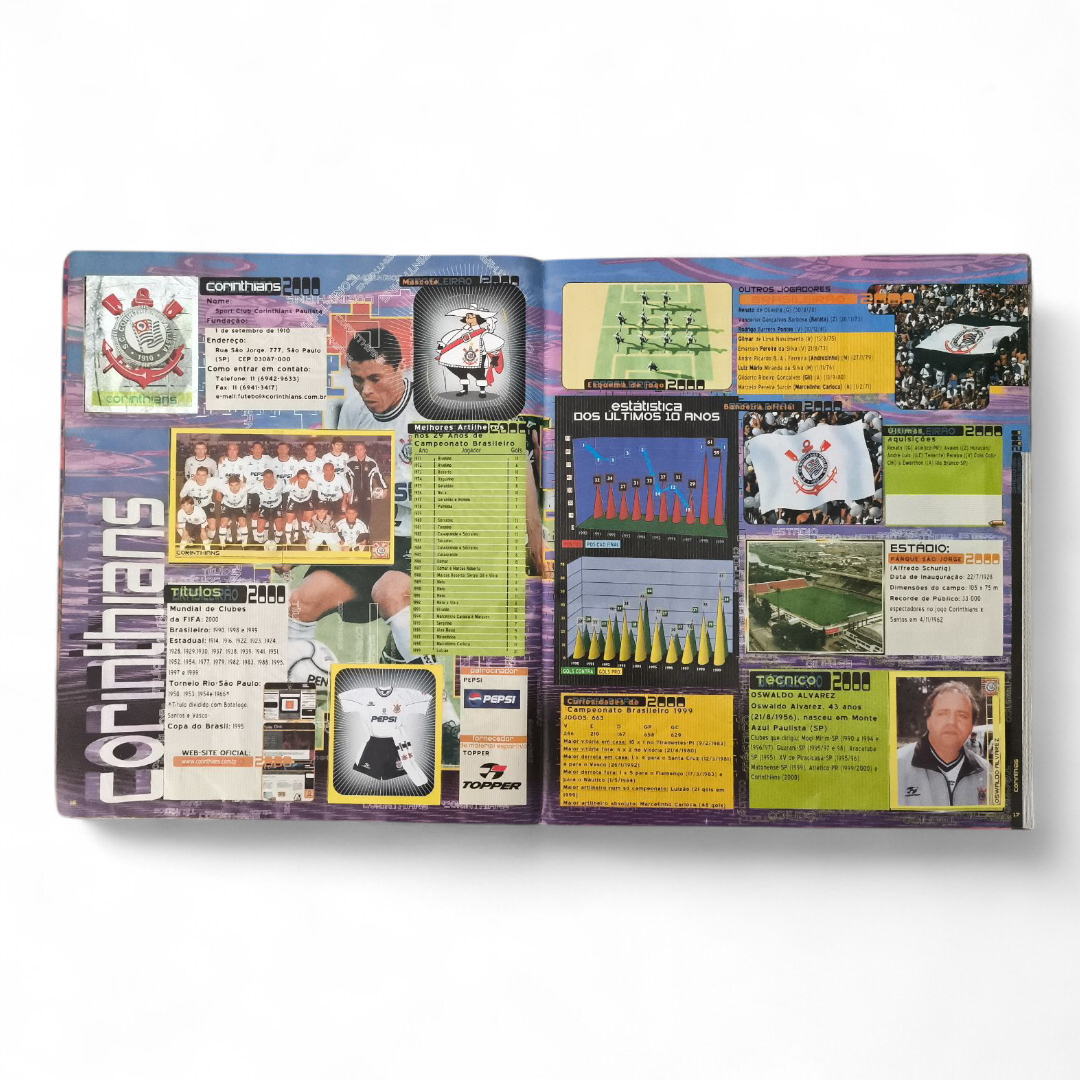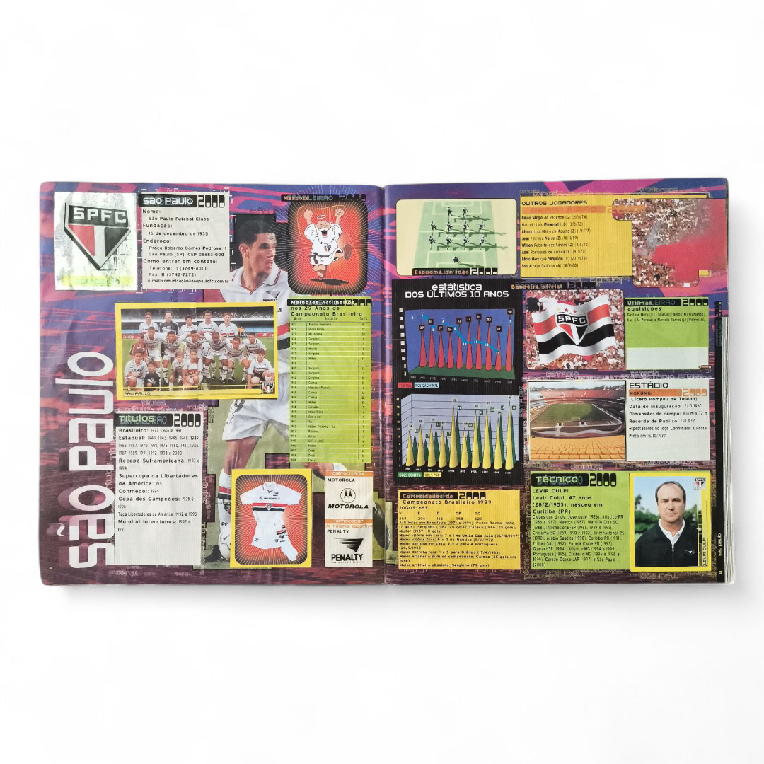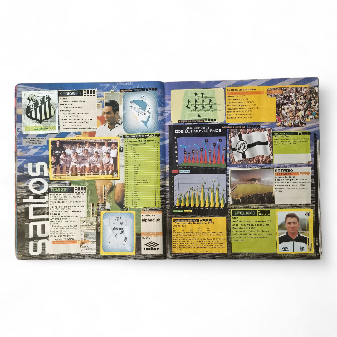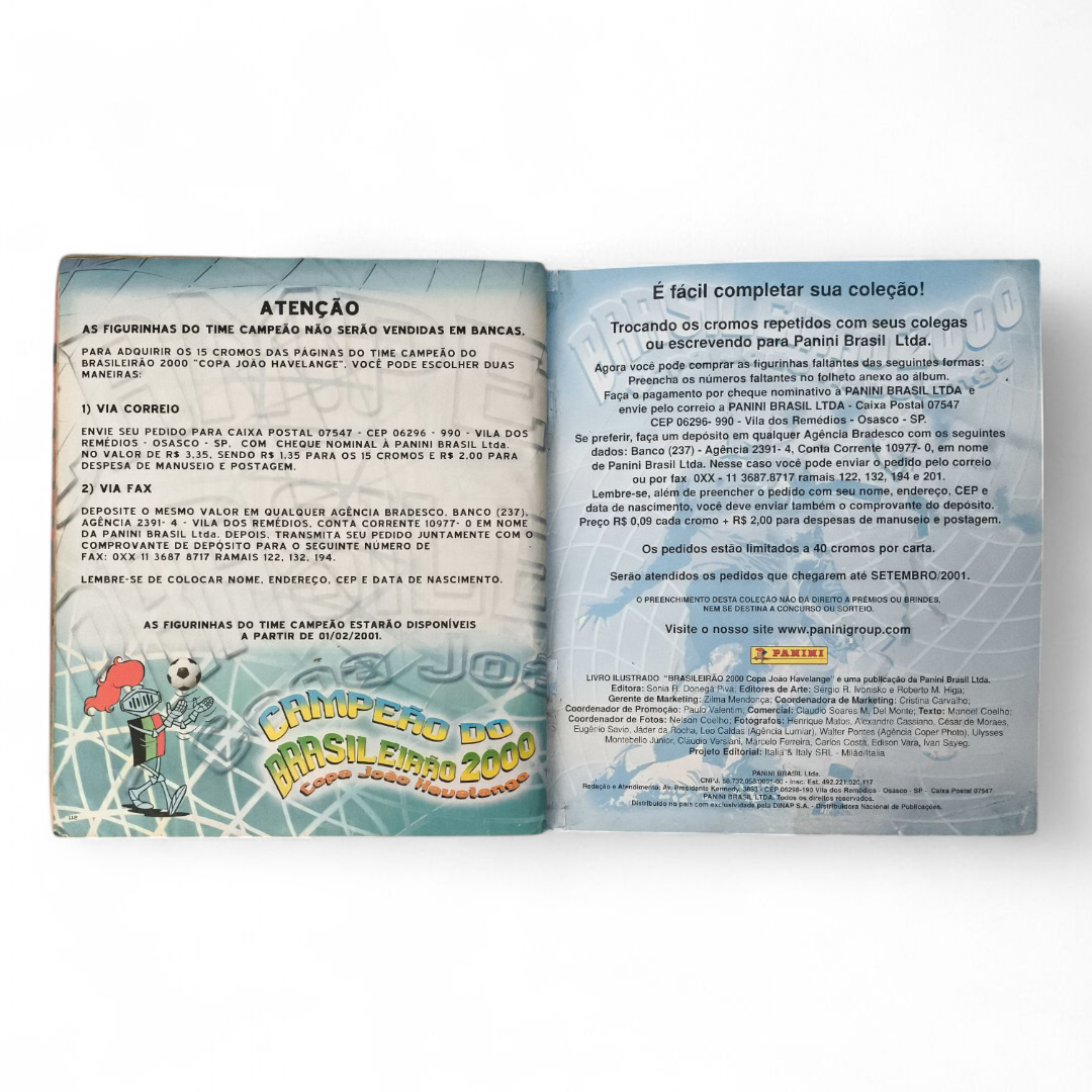 Álbum Brasileirão 2000 copa João Havelange, completo, tabelas em branco com figurinhas coladas, original da época.