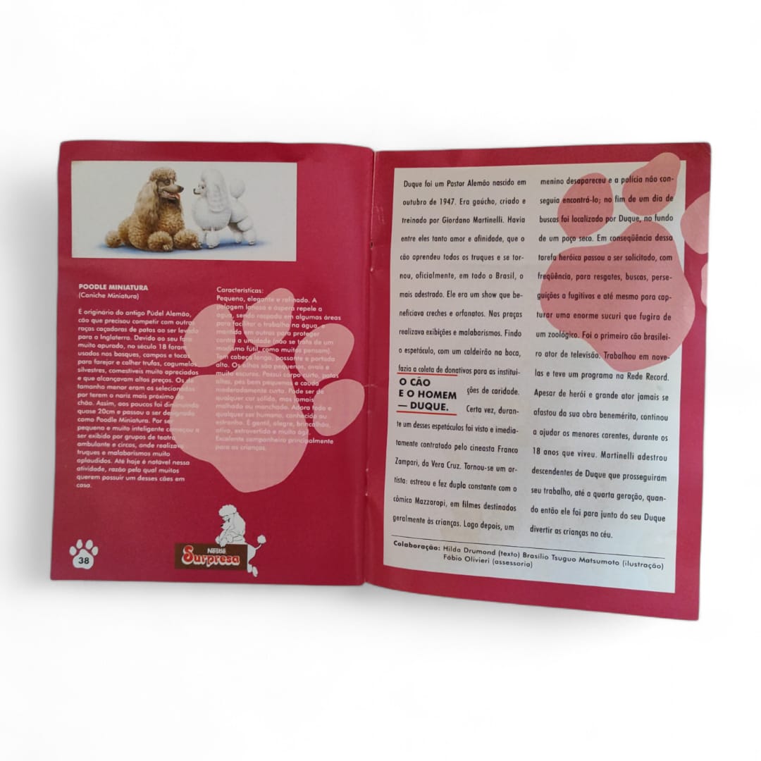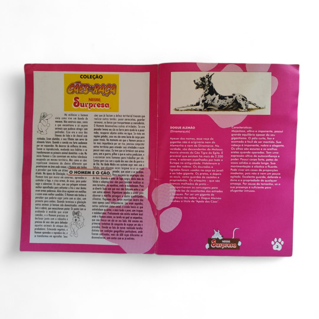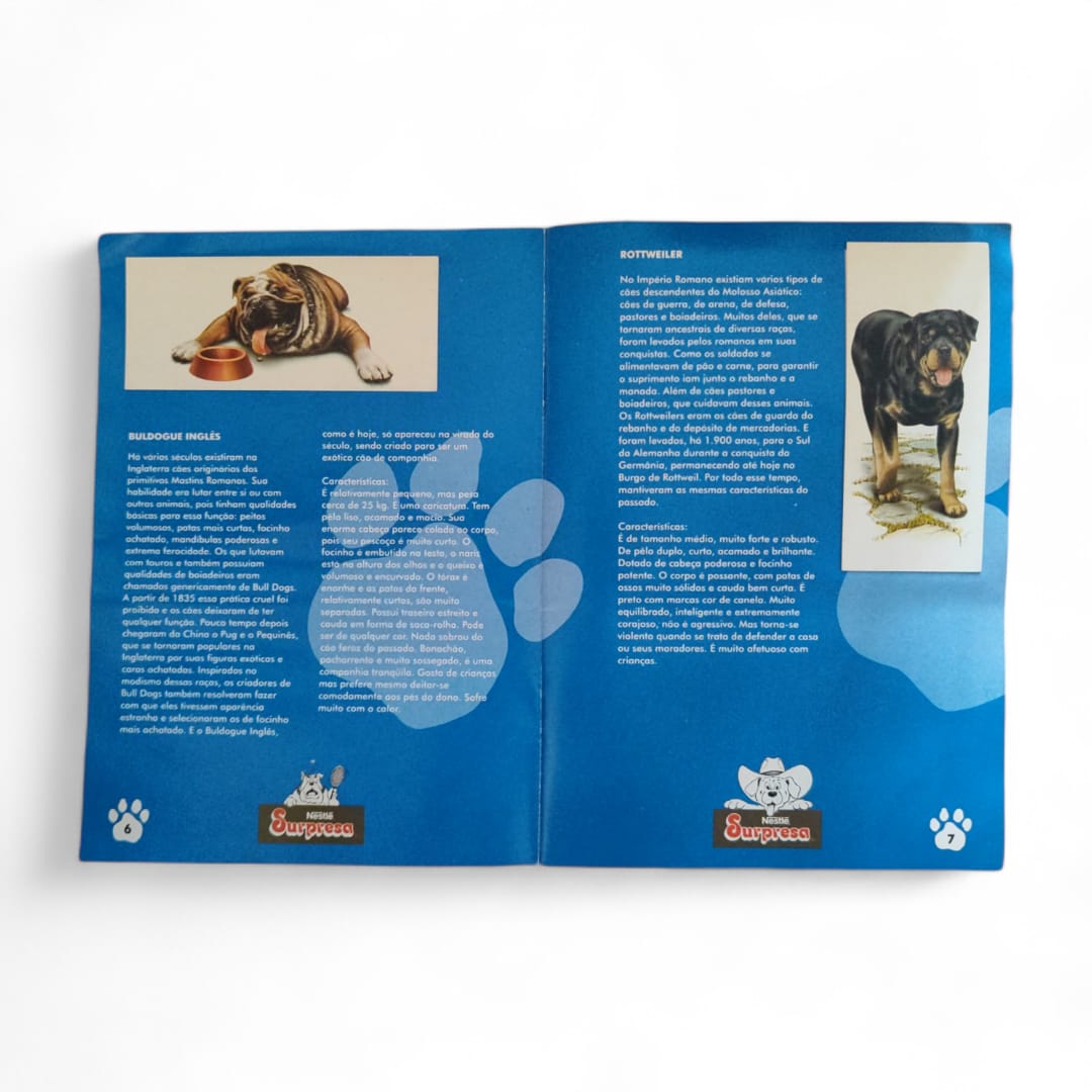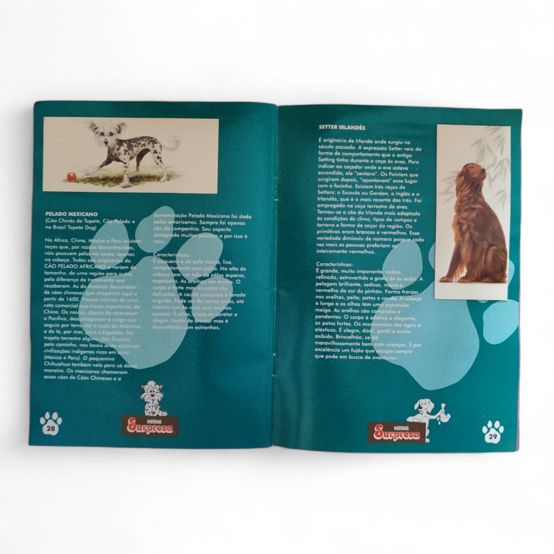 Álbum Cães de Raça Nestlé Surpresa 1992, completo com figurinhas coladas, original da época.